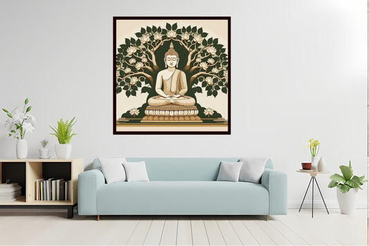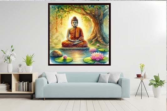 Gautam Buddha wall art Buddha enlightenment posters Indian Abstract Canvas Wall Art for Living Room, Bedroom, Office - Modern Abstract Paintings - Framed Decorative Art