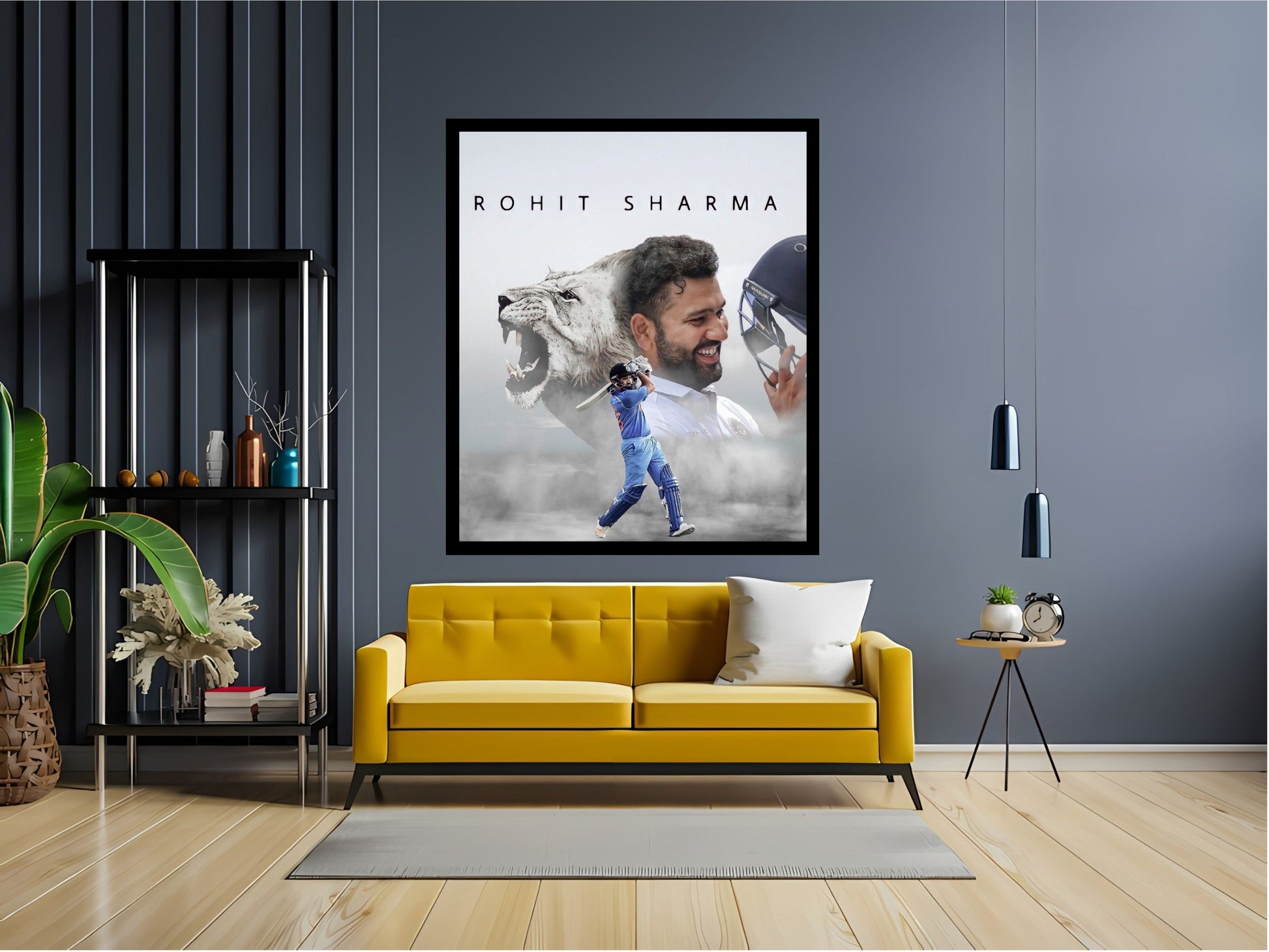 Elevate your decor with our stunning Rohit Sharma Cricket Poster. This masterpiece is crafted to perfection, featuring a premium matt black engineered wood frame that exudes elegance and durability. You also have the option to choose between high-quality 300 GSM paper or cotton canvas, ensuring a vivid and long-lasting portrayal of the cricketing maestro, Rohit Sharma.